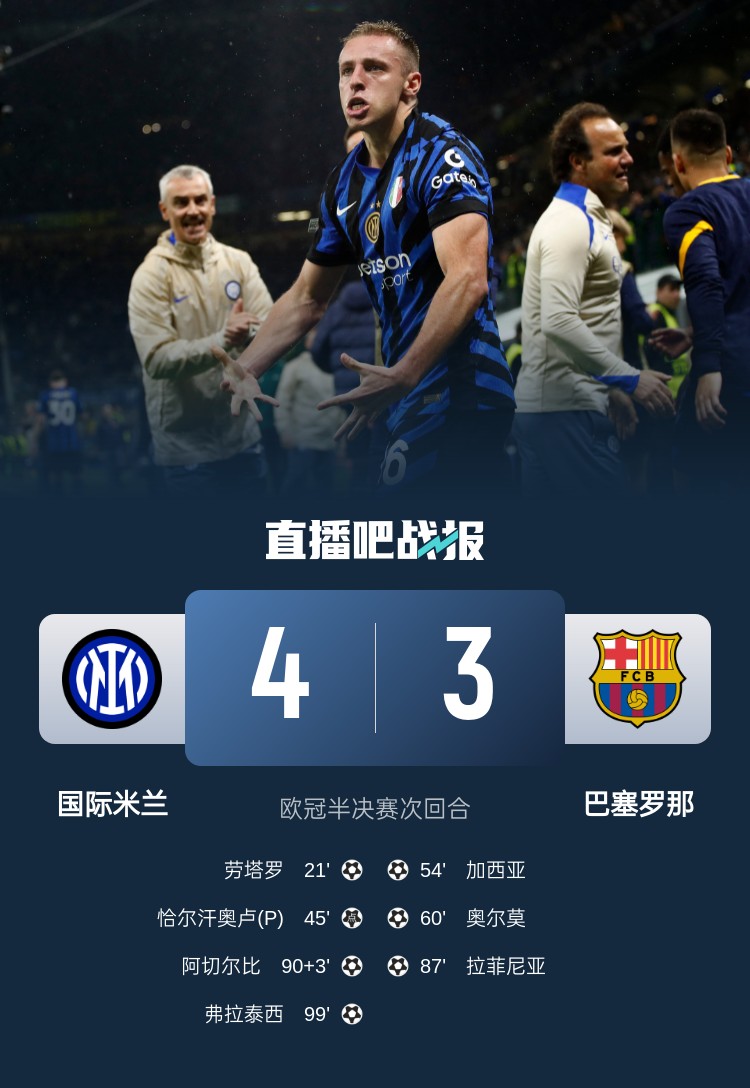 九游会j9官网真人游戏第一品牌05月07日讯 今日凌晨欧冠半决赛次回合,上演史诗级对决,国米4-3加时赛战胜巴萨,晋级决赛,回顾此前Deepseek对于本场比赛过程和结果的预测,竟出奇相符。